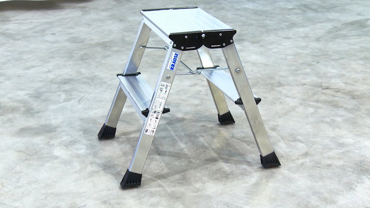 De vouwtrap/kruk van KRAUSE® heeft 4 treden en bestaat uit aluminium wat hem bijzonder licht maakt. De vouwtrap kan van beide zijden beklommen worden.