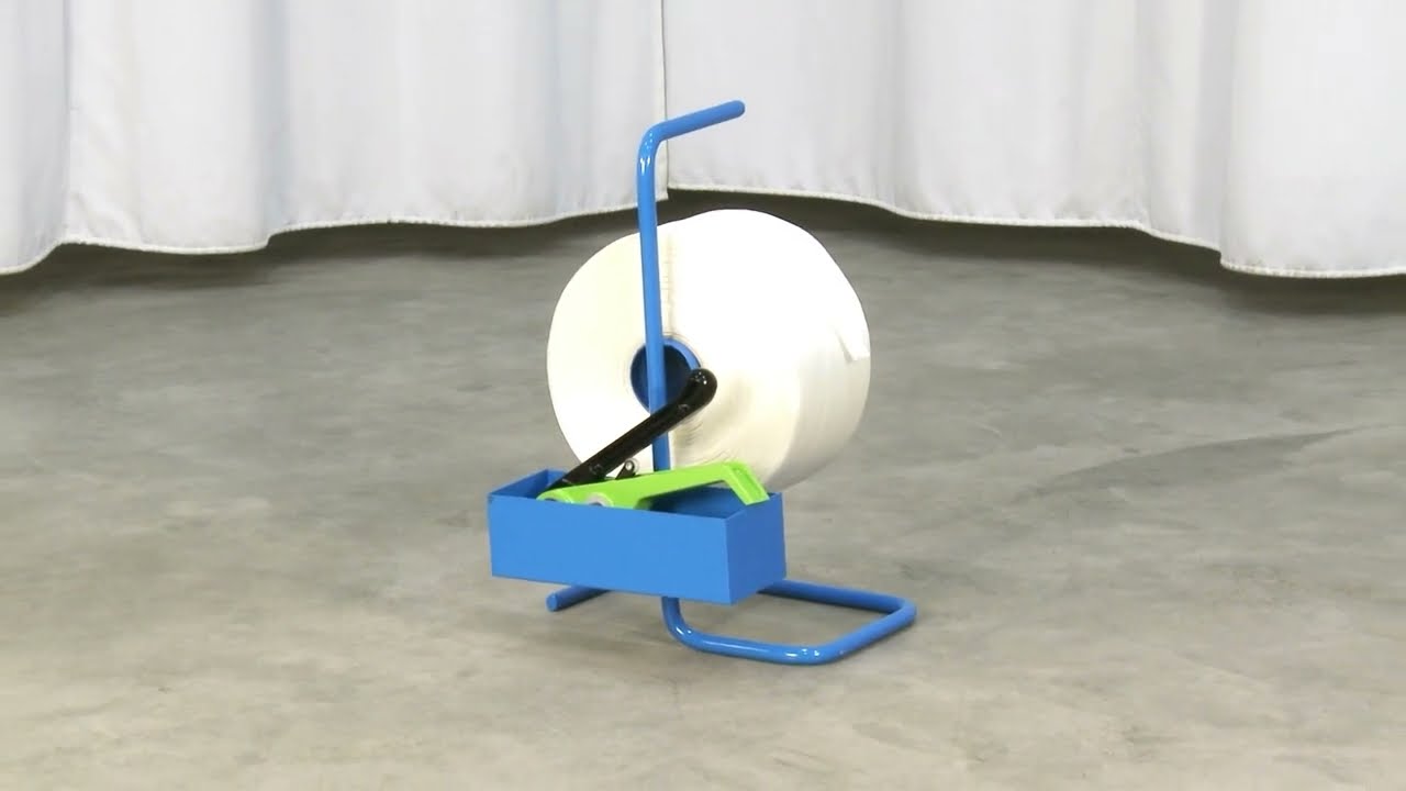 Deze set, met combinatieapparaat, verrijdbare bandafroller, sluithulzen en PP-omsnoeringsband, biedt u alle benodigdheden voor het handmatig omsnoeren van kartonnen dozen kratten, of pallets.