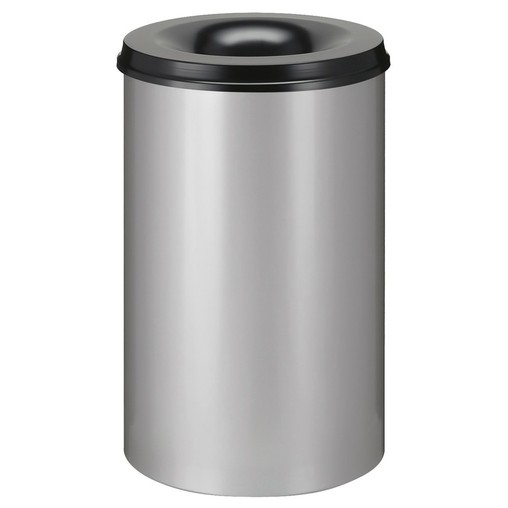 Veiligheidsafvalbak, zelfdovend, staal, 110 liter, aluminiumgrijs, zwart