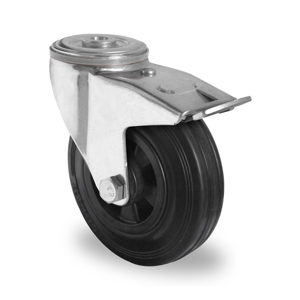 Het zwenkwiel boutgat met volledige vastzetrem uit de P4S4-serie biedt u een stille loop kwaliteit op alle ondergronden. Met een plaatstalen behuizing en een robuust rollager zorgt het voor hoge stabiliteit en duurzaamheid tijdens uw toepassingen.